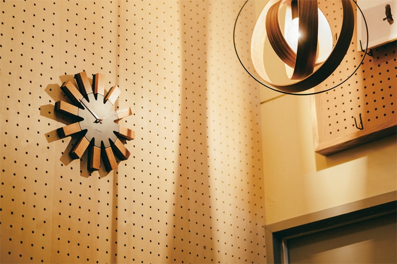 一度見たら忘れられない、歯車のようなウォールクロック。 アイキャッチーなデザインは壁面のユニークなアクセントとなります。