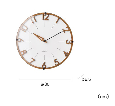 ウッドフレームと数字が一体となったシンプル&ナチュラルなウォールクロック。 立体的な数字と短針にウッドを使用した、モダンでありながらもあたたかみのあるデザインです。