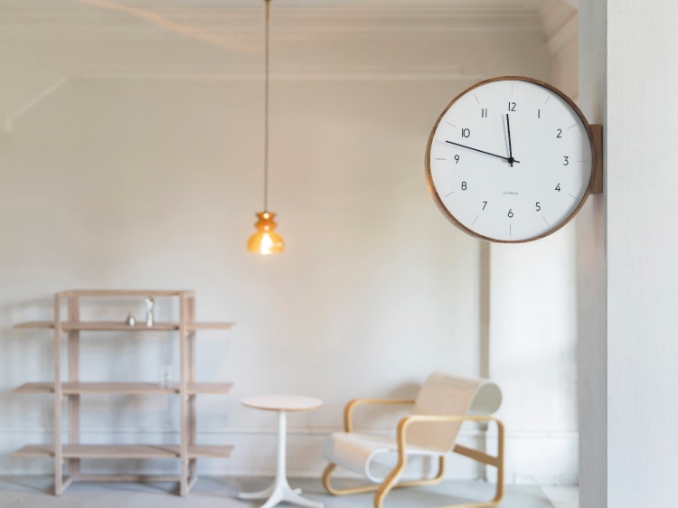 「暮らしに馴染む」をコンセプトにスタートした両面時計がようやく完成しました。 木目の美しさが特徴のウッドフレームからは素材のぬくもりだけでなく、職人の手仕事が見て、触れて、感じられます。 視認性を高めるため、文字盤デザインを広くしています。 程よい存在感で空間にフィットするサイズ感にもこだわりました。