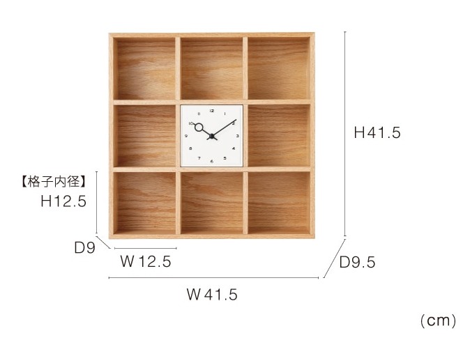 サイズ 全体:W41.5×H41.5×D9.5cm 格子内径:W12.5×H12.5×D9cm 重量 3.0kg 素材 MDF、ポリレジン |