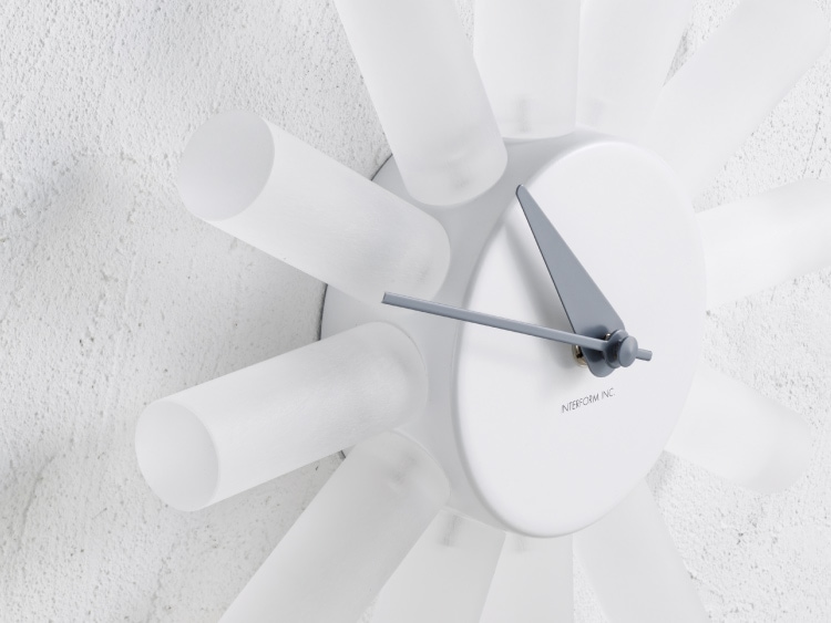 半透明のインデックスが氷の柱のように静かに影を落とす繊細なデザイン。 コンパクトながら立体感のある放射状のシルエットは、現代的な清楚さを纏っています。 壁や光の具合で表情を変えながら、淡いモノトーンがシームレスになじみます。