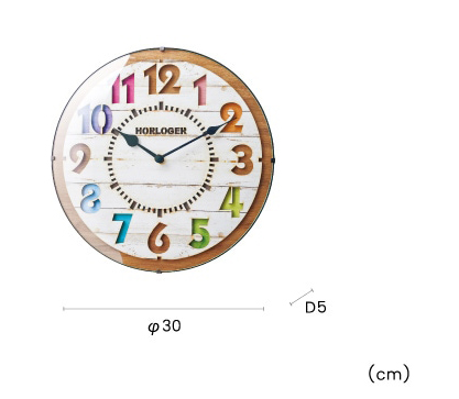ナチュラルテイスト満載のカラフルなウォールクロック。 コロンとした数字の向こうに見えるレインボーカラーに遊び心を感じられます。