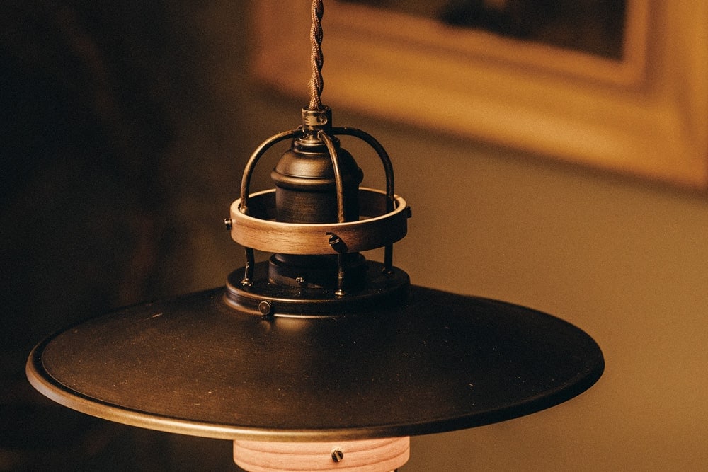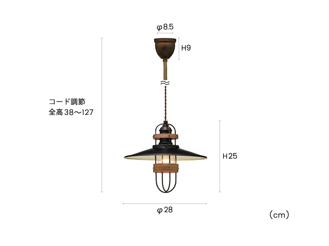 アンティークブラックの深みのあるカラーと、さりげなくあしらわれたウッドリングがクールなコントラストを生みだすハンサムなペンダントライトです。