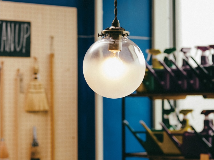 シャボン玉のようなまあるいフォルムにガラスの豊かな表情をプラスしたペンダントライト。 ハンドメイドのガラスを通して広がるあたたかな光が、幻想的なムードを作ります。