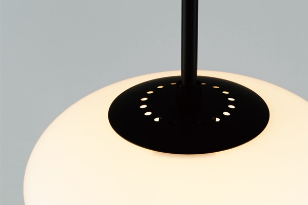 艶やかなオーバル型のガラスセードが、洗練された印象を与えるペンダントライト。 マットブラックのボディと乳白ガラスのコントラストがモダンなムードを漂わせます。