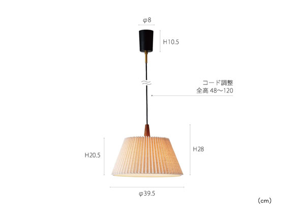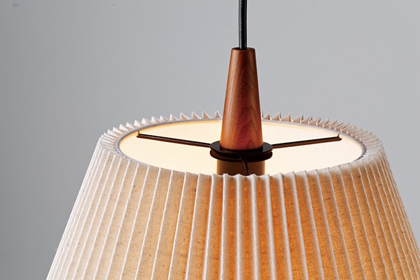 プリーツ状のファブリックセードが柔らかな明かりを灯す、ナチュラルな印象のペンダントライト。 セードの上部にあしらわれたウッドパーツがシンプルなシルエットに個性を添えています。