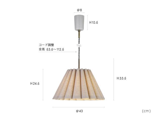 サイズ:φ43×H33.5cm(パイプを含む) コード全高: 53.5-112.5cm 重量 1.1-1.2kg |