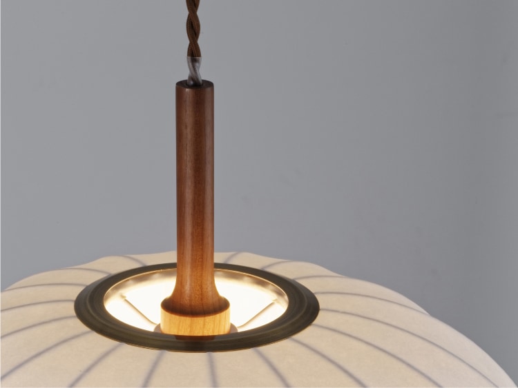 シルクのようにしなやかな素材を用いた、素朴で柔らかな光を灯すペンダントライト。 心地よいカーブを描きながら膨らむフォルムは懐かしさも感じさせます。