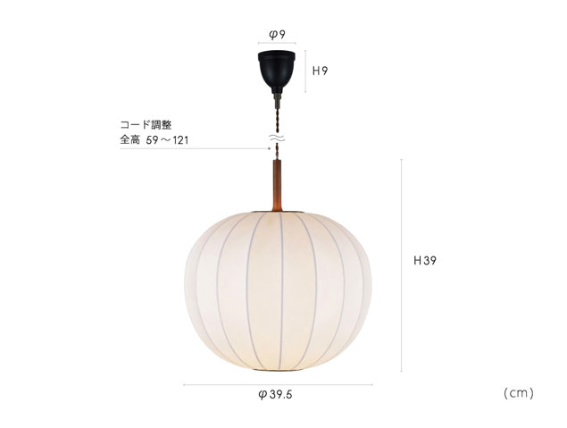 サイズ:φ39.5×H43cm(ウッドパーツを含む) コード全高: 59-121cm 重量 1.3-1.4kg |