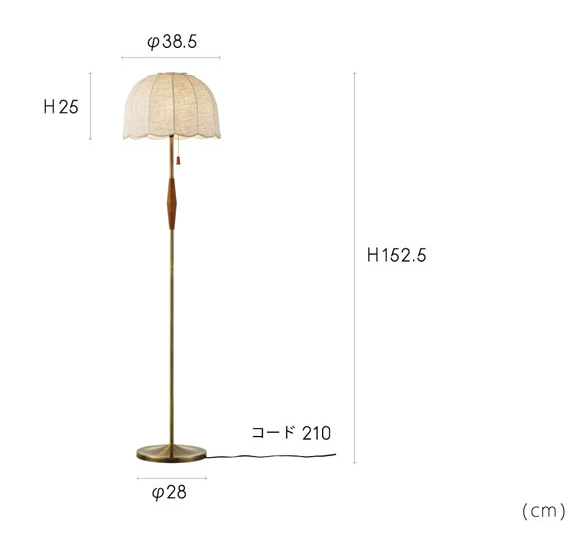 フレンチビンテージの着想を得たスカラップデザインのセードが印象的なフロアライト。 光を効率的に拡散させる反射板や、ハンドルと同じウッドをあしらったプルスイッチなど、デザインと機能のバランスを追求しました。 ファブリックとウッドが織りなすナチュラルな佇まいが、贅沢な時間を照らします。