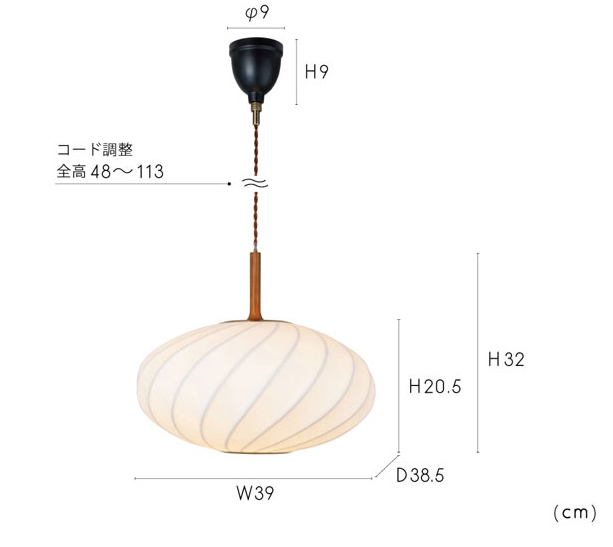 サイズ:全体:W39×D38.5×H32cm セードのみ:W39×D38.5×H20.5cm コード全高:48-113cm |