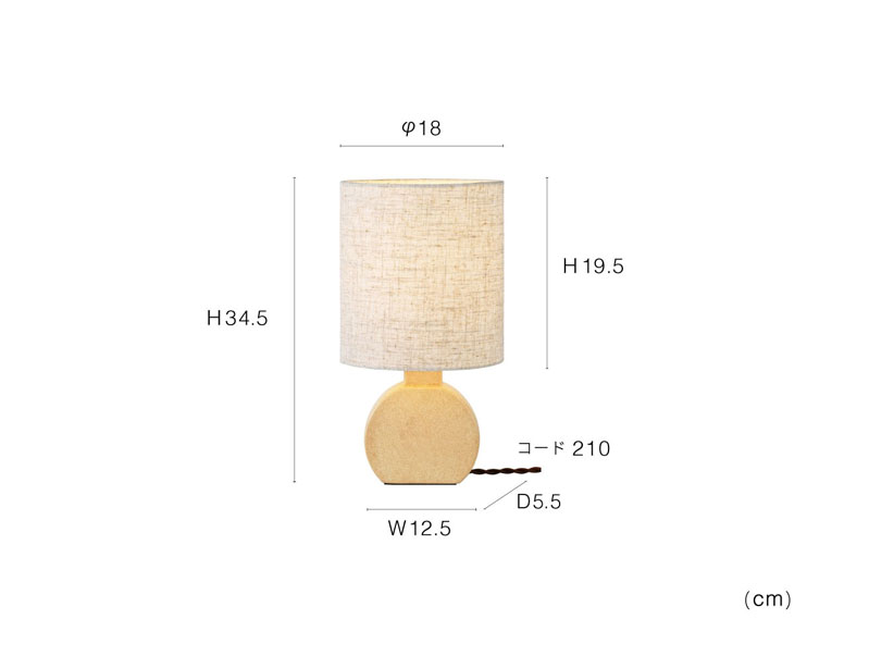サイズ:全体:φ18×H34.5cm セード:φ18×H19.5cm ベース:W12.5×D5.5cm コード:210cm 重量 1.1-1.2kg |
