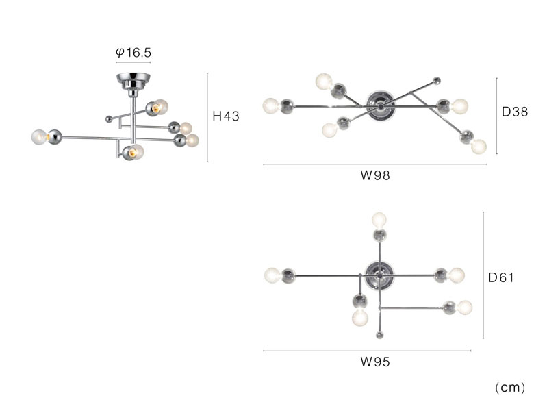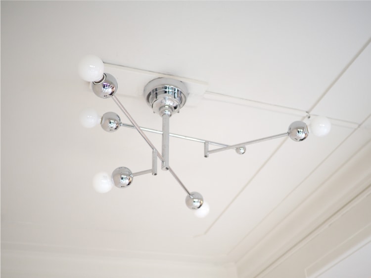 ミッドセンチュリーを彷彿とさせるフレキシブルデザインのシーリングライト。 球体と直線が織りなすアシンメトリーなフォルムが、個性的な雰囲気を醸し出します。 アームを可動させて自由にスタイリングできるので、お部屋に合わせてお好みのシルエットでお楽しみいただけます。 光沢のあるクロームカラーがスタイリッシュに演出し、電球の光が反射することできらめきが生まれ、空間全体を美しく照らします。