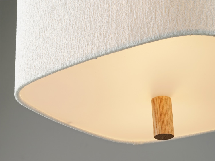 まるで毛布に包まれるような、やさしく穏やかな時間を灯すペンダントライト。 角の丸いゆるやかなフォルムの表面には、トレンド感のあるブークレ生地を使用。 もこもことした柔らかな質感は、つい触れてみたくなるような温もりを感じさせます。 支柱にあしらったウッドパーツがナチュラルなアクセントに。