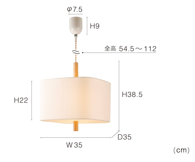サイズ:全体:W35×H38.5×D35cm シーリングカバー:φ7.5×H9cm コード全高:54.5-112cm 重量 1.7-1.8kg |