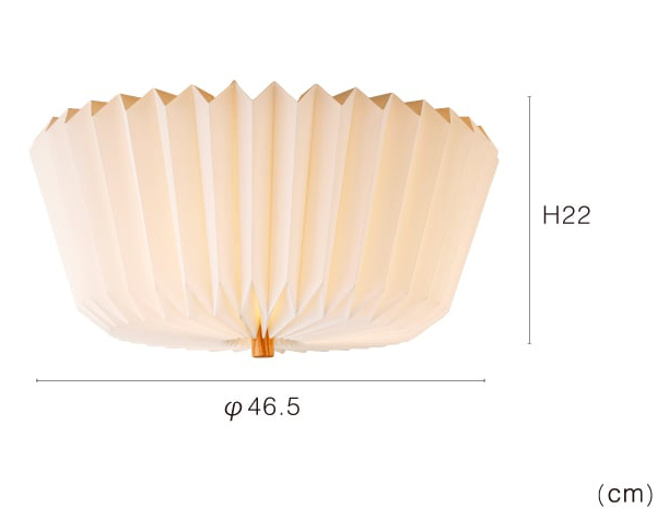 連続する細やかな折りがつくりだす、華やかでありながら繊細な形状と心地よい陰影。 障子越しの陽光のようにやわらかな光が広がり、落ち着きのある空間を演出します。 さりげないウッドパーツがぬくもりを添え、和風から北欧、ジャパンディまで多様なスタイルになじみます。 洗練された上品さだけでなく、明るさの確保やコンパクトな設計にもこだわりました。
