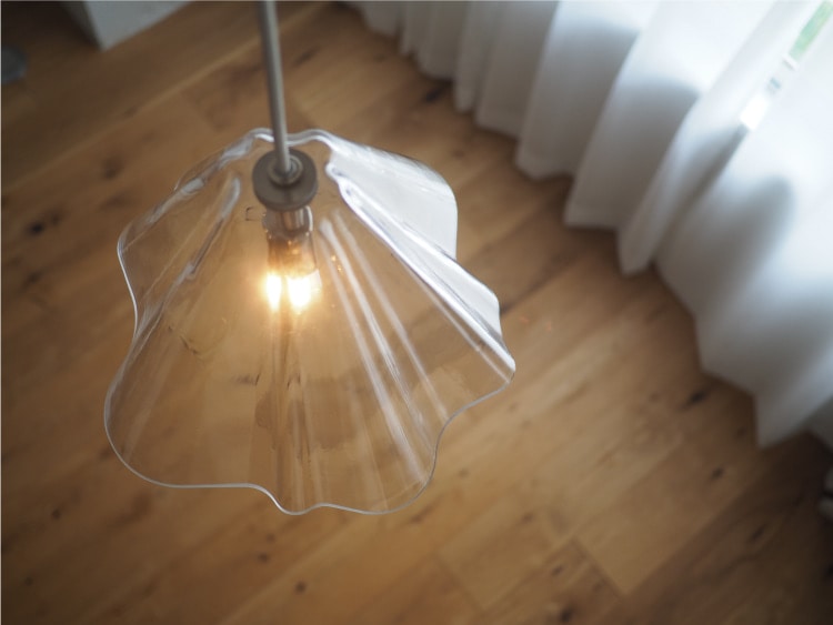 北極の空に揺らめくオーロラを映した、ガラスのペンダントライト。 光を受けたガラスが澄んだきらめきを纏い、風になびくカーテンのように有機的な曲線が、詩情あふれる美しい風景をもたらします。