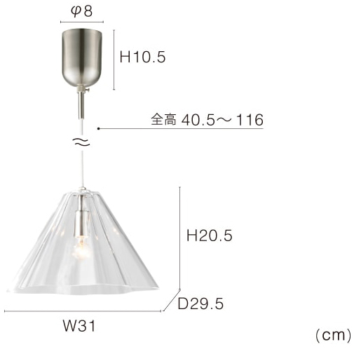 サイズ:全体:W31×H20.5×D29.5cm シーリングカバー:φ8×H10.5cm コード全高:40.5-116cm 重量 2.0kg |
