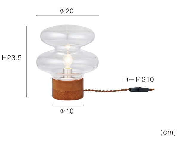 サイズ:全体:φ20×H23.5cm セード:φ20×H17.5cm ベース:φ10×H6cm コード:210cm 重量 1.4kg