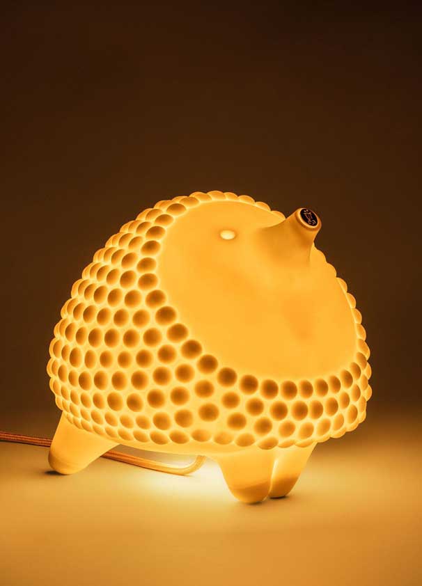 ハリネズミからインスピレーションを得た、ポーセリンテーブルランプです。