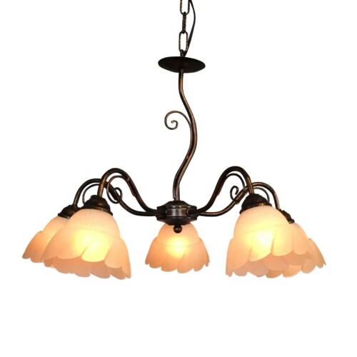 美しいアイアンワーク、細工の入ったガラスシェード。イタリアらしいが空間を柔らかく照らします。ガラスは薄くアンバー色が入り、気泡模様が浮き上がります。アームは銅色をベースにしたエイジング塗装。チェーン吊りタイプもお奨めです。